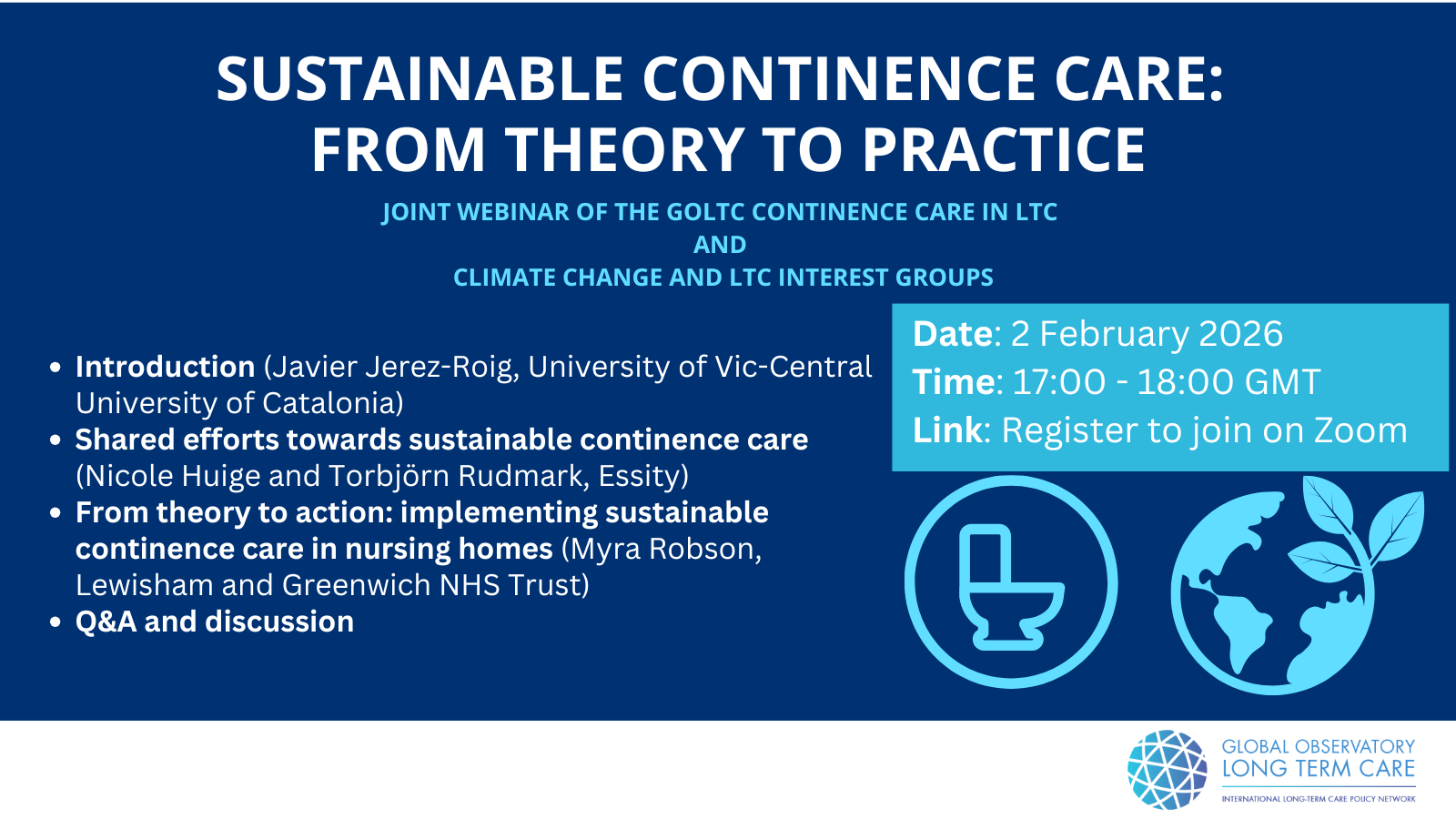 Sustainable Continence Care: from Theory to Practice Joint GOLTC Continence Care in Long-Term Care and Climate Change and LTC Interest Groups webinar Date: 2 February 2026 Time: 17.00-18.00 GMT (you can check your local time here) Link: Register to join on Zoom This webinar will explore how sustainability principles can be integrated into […]