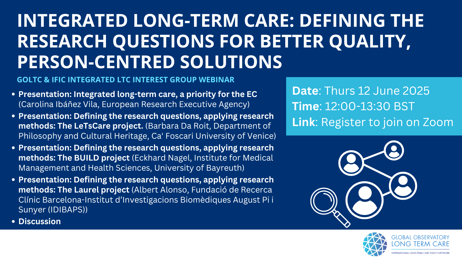 This webinar is organised by the Integrated Long-Term Care Interest Group, a joint initiative between the International Foundation of Integrated Care (IFIC) and the Global Observatory of Long-term Care (GOLTC)
