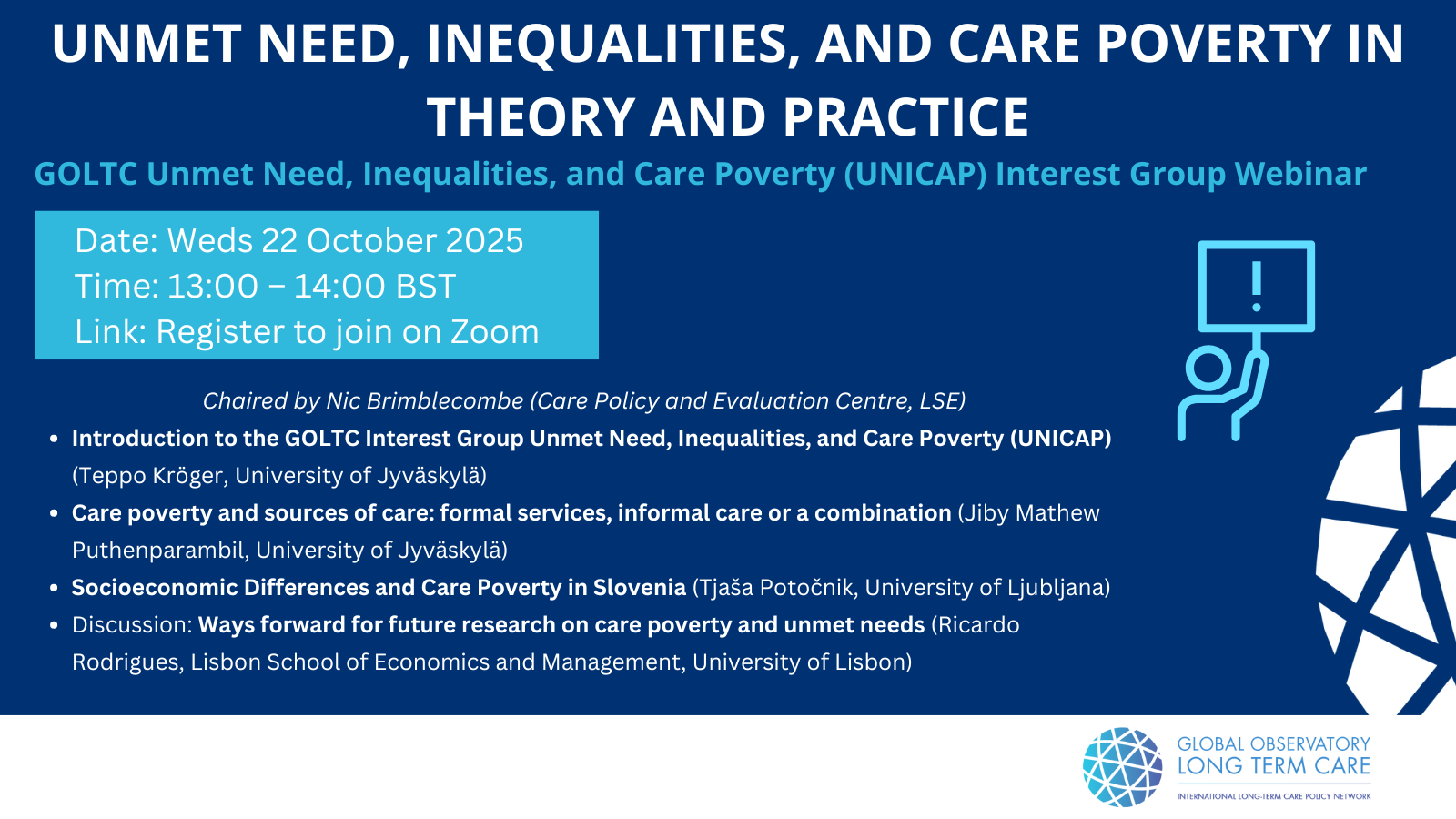 GOLTC Webinar Recording: GOLTC Unmet need, inequalities and care poverty (UNICAP) Interest Group webinar